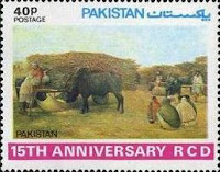 On the eve of 15th anniversary of RCD, 21st July 1979, Pakistan Post issued a joint series of three stamps of painting of Turkey, Iran and Pakistan. And the 40p stamp bore the painting of Ustad Allah Baksh as seen below: