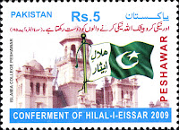 This set of five stamps was issued on 22nd Feb 2010, which bore the name of these cities and the flag of Pakistan inscribed with the words: Hilal-i-Iessar.